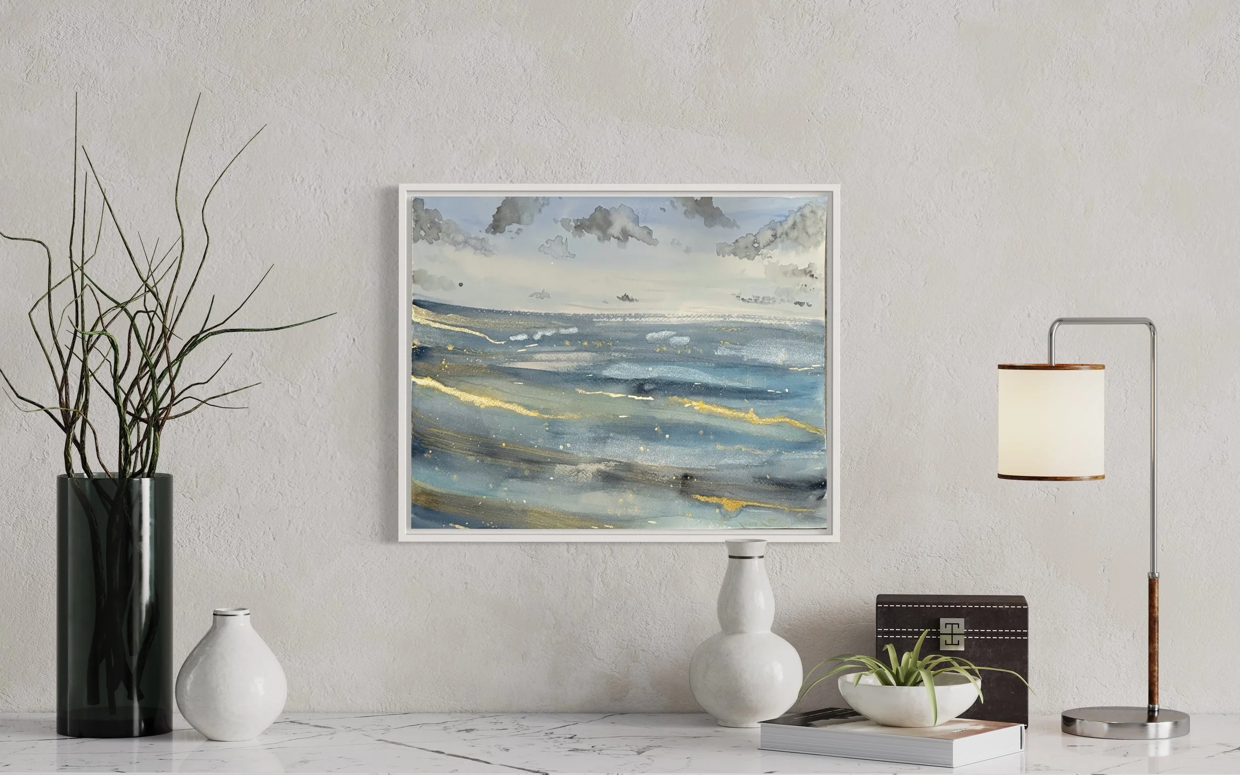 Each piece is dynamic and will feature gold, pearl, or glitter effects that shifts in different types of light. Photos do not showcase these gorgeous paintings properly.
